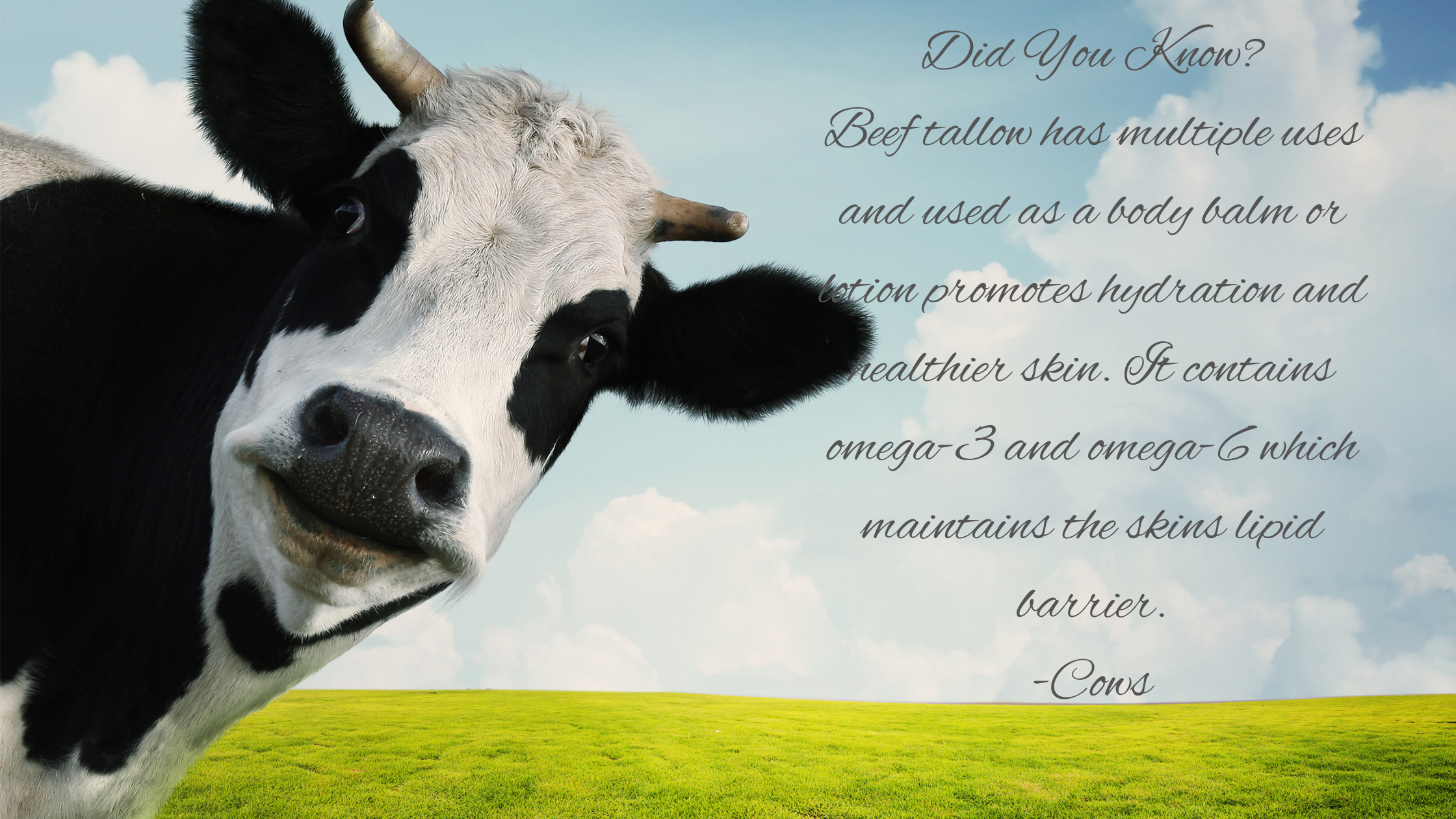 Tallow Balm And Butter Contain Vitamin A, Vitamin D, Vitamin E, Vitamin K, Omega-3, and Omega-6. Which Bring The Ultamite Moisture Without Leaving A Greasy Residue. Also Does Not Smell Like Beef.
